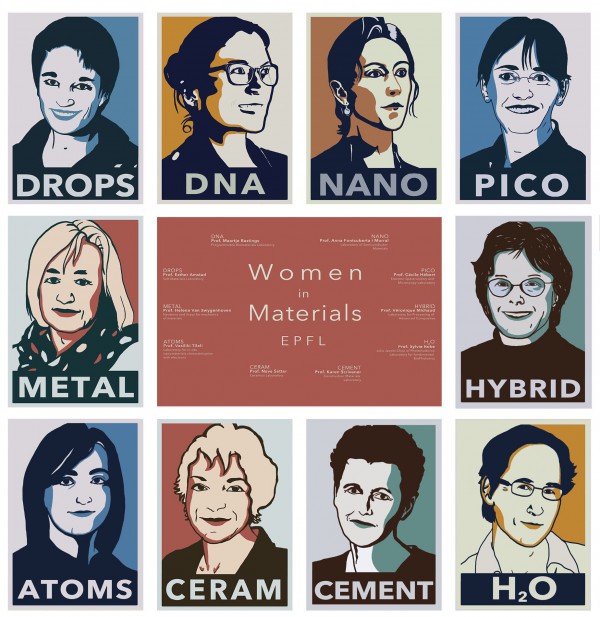 The Institute of Materials (IMX) has inaugured artwork celebrating its women faculty in the entry hall of building MX. The installation, which is two meters high and two meters wide, features nine currently active members of the department and one professor emeritus and was designed by graphic designer Alban Kakulya.