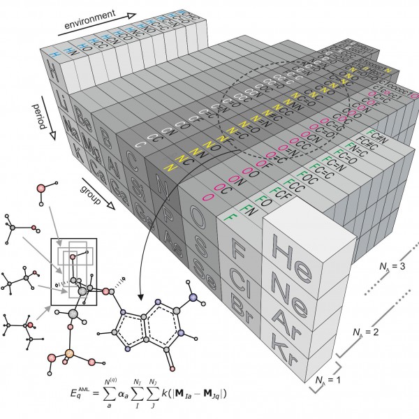 The issue inspired researchers Anatole von Lilienfeld and Bing Huang at the University of Basel to take a new approach based on so-called amons, or Atom-in-Molecule-on. The method involves on-the-fly training using reference instances that are selected by local similarity measures from a dictionary of a series of small molecular building blocks which systematically grow in size.Since such building blocks repeat throughout the chemical space of larger query compounds, they can be viewed as indistinguishable entities, each representing an amon. The AML approach accounts for chemical environments by building on Mendeleev's periodic table, allowing for the systematic reconstruction of many chemistries from local building blocks.