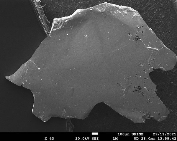 Switzerland-shaped crystal of jacutingaite grown in the Laboratory for Quantum Materials Discovery, DQMP, University of Geneva. Image from I. Cucchi et al., Phys.Rev.Lett 124, 106402 (2020).