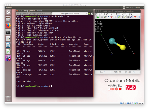 The first version of the Quantum Mobile Virtual Machine, supported by the NCCR MARVEL and the MaX H2020 Centre of Excellence.