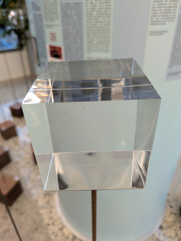 The installation, inaugurated in November, is the work of artists Étienne Krähenbühl and Alban Kakulya, and aims to present important engineering materials in an original and compelling way. It consists of a 'field' of materials (from crystals to perovskite solar cells and thermally drawn functional fibers, and from 3D-printed metals to dispersed microparticles, each with an explanation of the ongoing research surrounding it) encased within resin blocks mounted on metal rods arranged around a central column, and accompanied by explanatory texts.
