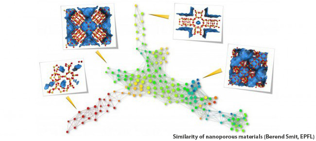 In their paper Quantifying similarity of pore-geometry in nanoporous materials, Prof. Berend Smit and his MARVEL team present a mathematical method for describing and comparing pore shape in nanoporous materials. For nanoporous materials, pore shape is as important a determinant of performance as chemical composition. However, an effective method to quantify similarity of pore geometry had been lacking so far.