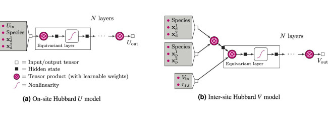 Scientists at EPFL and the Paul Scherrer Institute have shown that machine learning can reduce the time and computational cost of density-functional theory with extended Hubbard functionals, a widely used method that allows to simulate complex materials containing transition-metal or rare-earth elements. Using a recently developed class of neural networks called “equivariant neural networks”, and a dataset of 12 materials spanning various crystal structures and compositions, the team trained two separate models – one for the U parameter and one for the V – to work independently of one another. The models performed very well in calculating both the U and V parameters themselves, as well as some downstream properties such as magnetic moments or voltages. The study is published in npj Computational Materials.