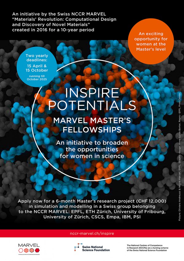 This is an initiative started in 2016 by the NCCR MARVEL, and currently planned up until 2025 where we offer 6-months fellowships to women students to conduct their Master's research thesis in a group participating in MARVEL. There were 8 fellowships available every year; each fellowship amounted to 12'000 CHF. You can find here: