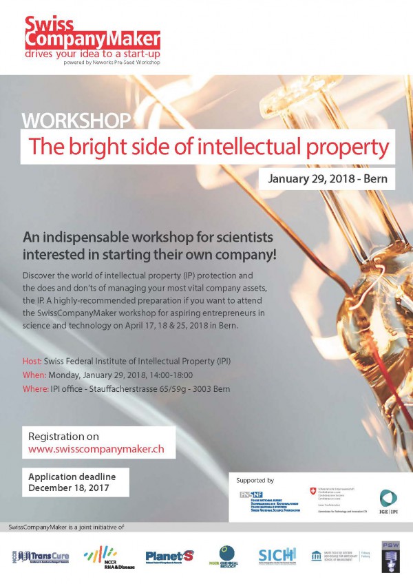 An indispensable workshop for scientists interested in starting their own company! Register before December 18, 2017.
